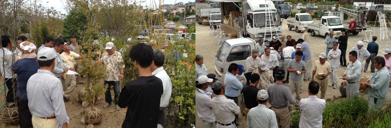 「山本園芸協会」は江戸時代から近隣集落の同業者とともに組織していた戎講から分かれ、山本地区の園芸業者のみで結成した協会の前身である天狗会から続く、100年以上の歴史を持ち、関西を代表する業者用の園芸植木市場を開催しております。